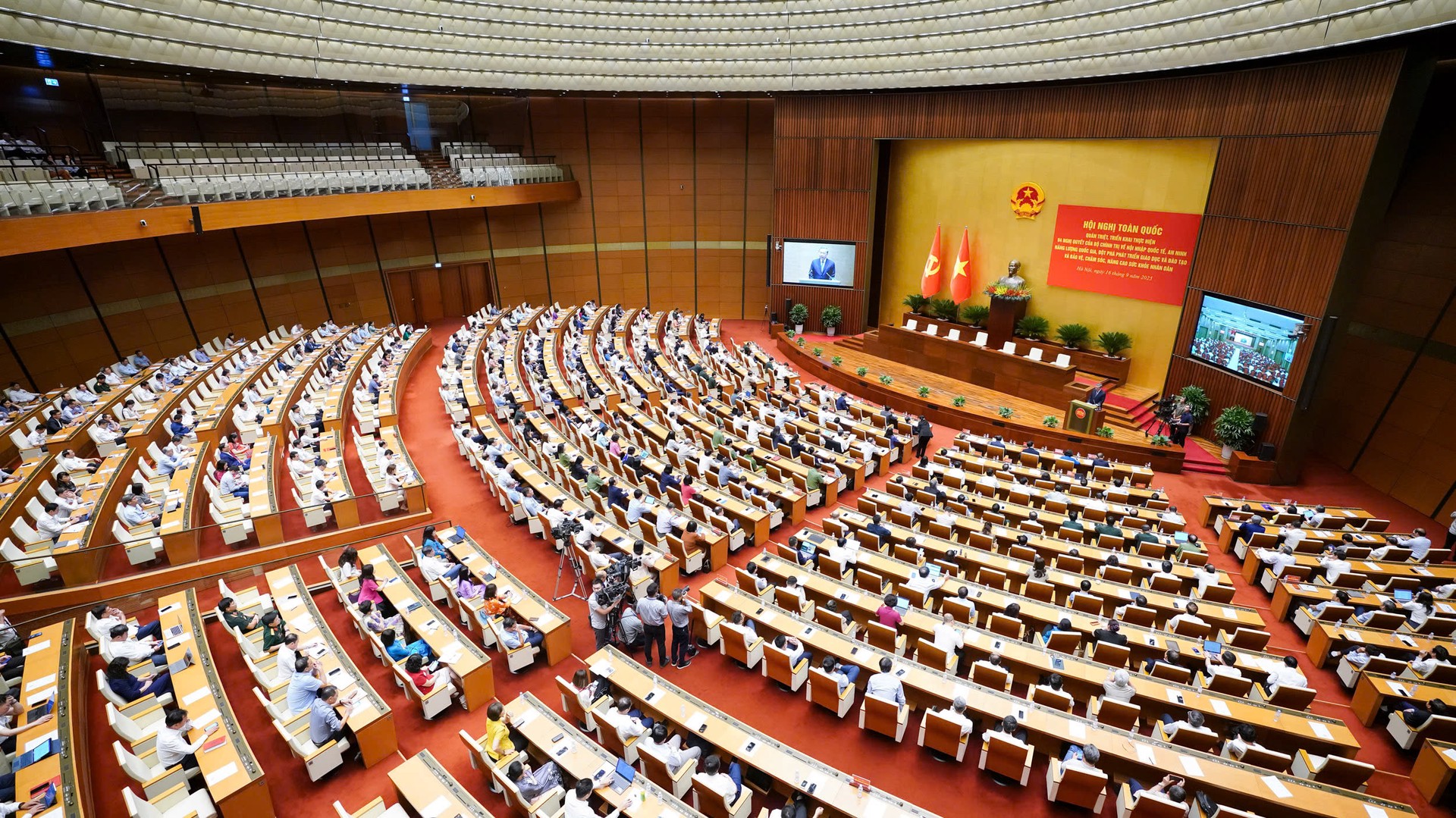 Hội nghị được tổ chức tại điểm cầu chính Nhà Quốc hội (Hà Nội) và kết nối với gần 11 điểm cầu, với hơn 1,2 triệu đại biểu tham dự. Dự Hội nghị có: đồng chí Lương Cường, Ủy viên Bộ Chính trị, Chủ tịch nước; đồng chí Phạm Minh Chính, Ủy viên Bộ Chính trị, Thủ tướng Chính phủ; đồng chí Nguyễn Tấn Dũng, nguyên Ủy viên Bộ Chính trị, nguyên Thủ tướng Chính phủ dự tại điểm cầu Thành phố Hồ Chí Minh; đồng chí Trần Thanh Mẫn, Ủy viên Bộ Chính trị, Chủ tịch Quốc hội; đồng chí Trần Cẩm Tú, Ủy viên Bộ Chính trị, Thường trực Ban Bí thư Trung ương Đảng.