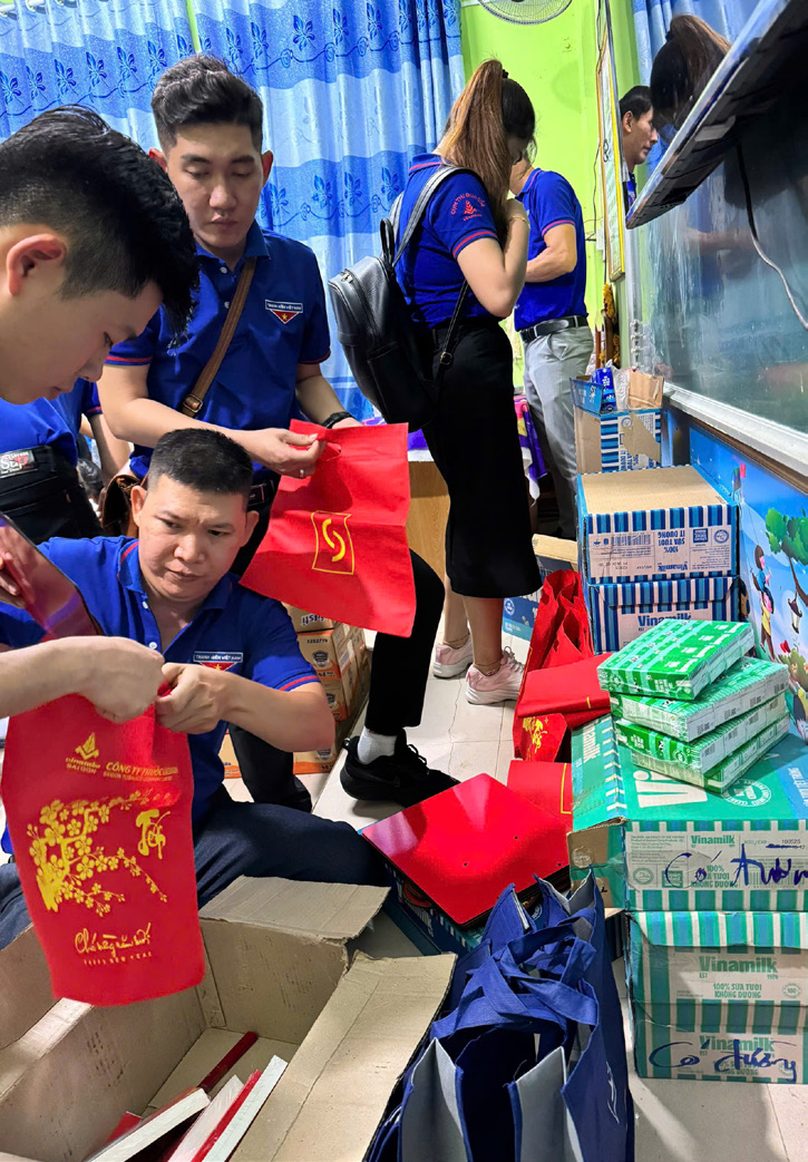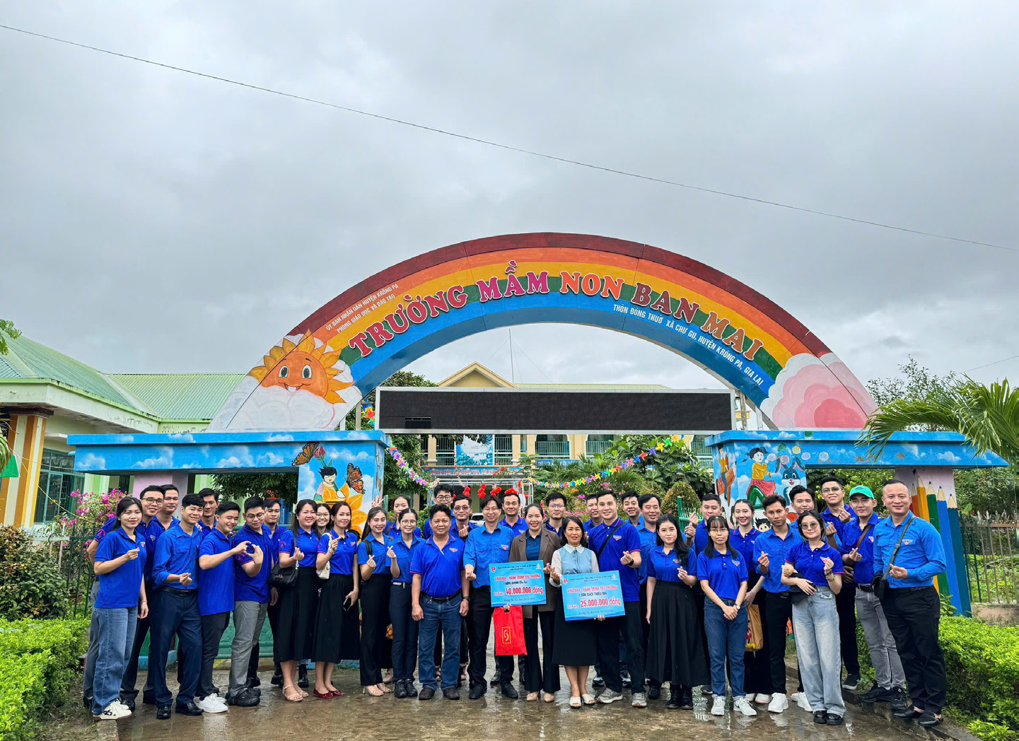 Đồng thời, nhận thức rõ vai trò của Đoàn Thanh niên trong công tác chăm lo cho thiếu niên nhi đồng, Đoàn Thanh niên Công ty luôn đồng hành và dành sự quan tâm, hỗ trợ hết mình cho các hoạt động hướng về những mầm non của đất nước. Các chi đoàn tổ chức các chương trình “Vì đàn em” tặng quà cho các em học sinh nghèo vượt khó, gia đình có hoàn cảnh khó khăn. Trong năm 2024 các chi đoàn đã tổ chức tại Huyện Cần Giuộc - Long An, Bình Chánh, Vĩnh lộc…. Ngoài ra Đoàn công ty còn phối hợp với các đơn vị trong Cụm thi đua số 2 thuộc Đoàn Tổng công ty Thuốc lá Việt Nam xây dựng kế hoạch và tổ chức chương trình giáo dục truyền thống thăm các di tích lịch sử tại địa bàn tỉnh Dak Lak và chương trình trọng điểm an sinh xã hội (gắn biển công trình cấp Khối) tại Krông Pa, Gia Lai nhằm thể hiện trách nhiệm với cộng đồng mà đặc biệt là đối tượng gia đình chính sách, người cao tuổi, thanh thiếu nhi có nhiều khó khăn. Tổng kinh phí trao tặng trên 400 triệu đồng.