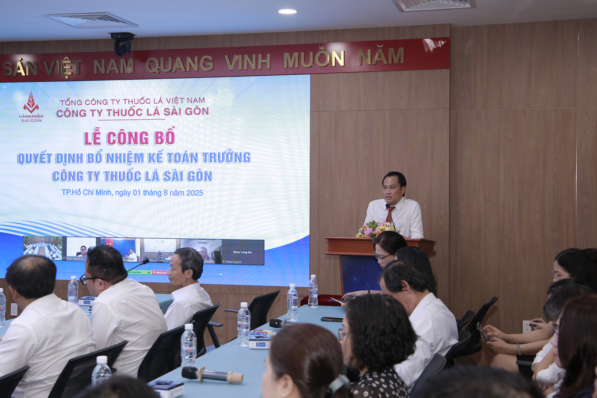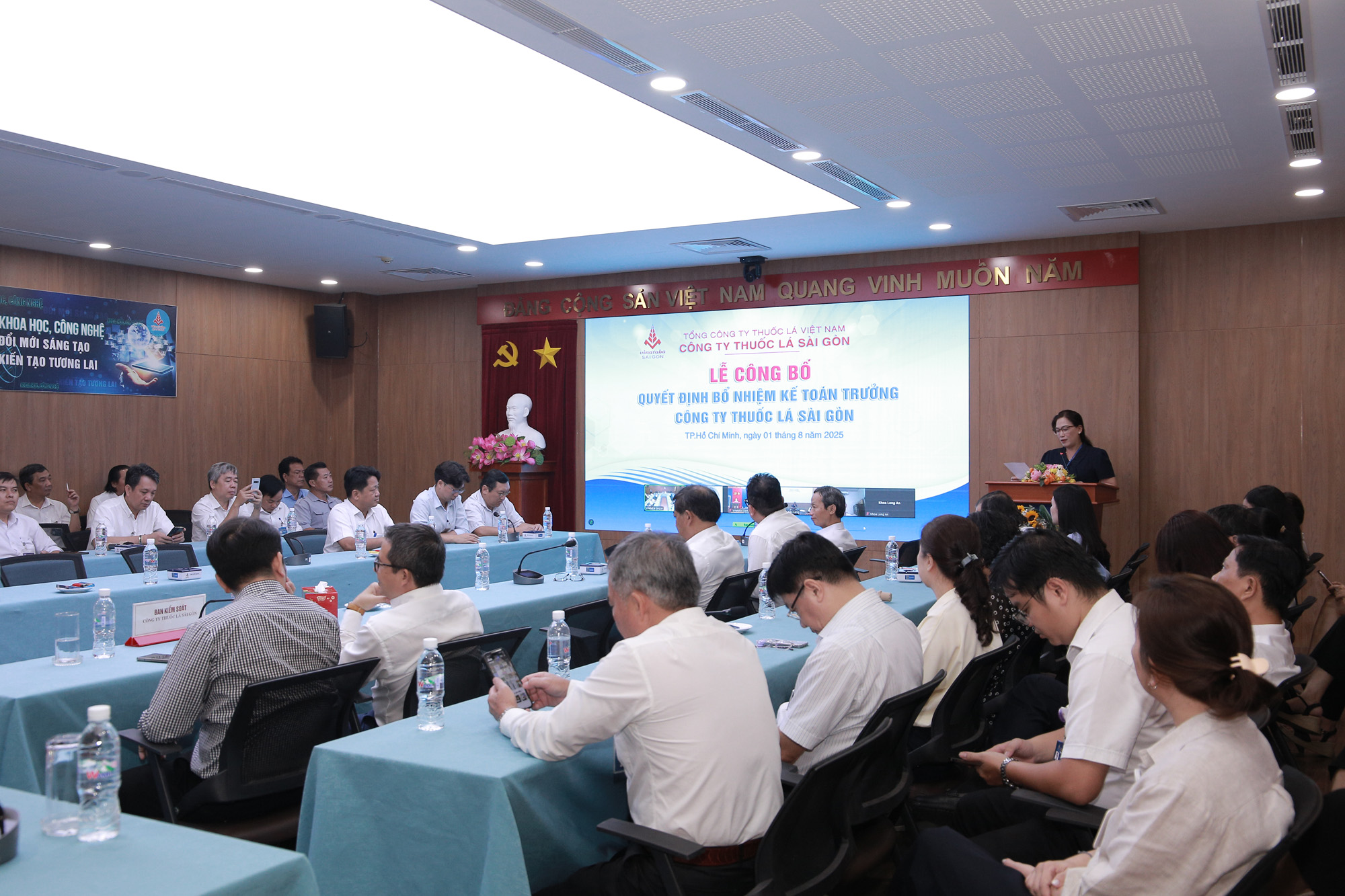 Ngày 01 tháng 8 năm 2025, Công ty Thuốc lá Sài Gòn đã long trọng tổ chức Lễ công bố Quyết định bổ nhiệm chức vụ Kế toán trưởng Công ty. Việc bổ nhiệm này nhằm kiện toàn nhân sự quản lý sau khi Kế toán trưởng tiền nhiệm nghỉ hưu theo chế độ.
