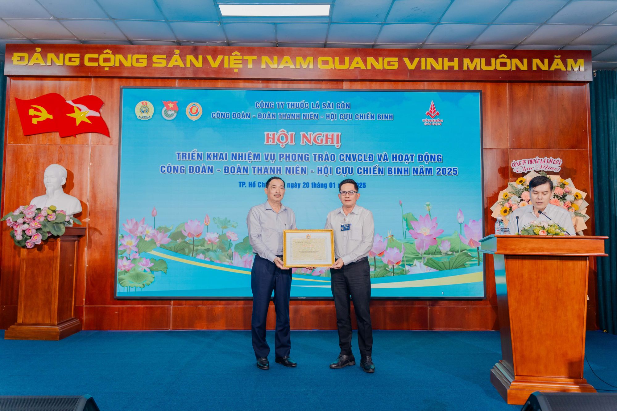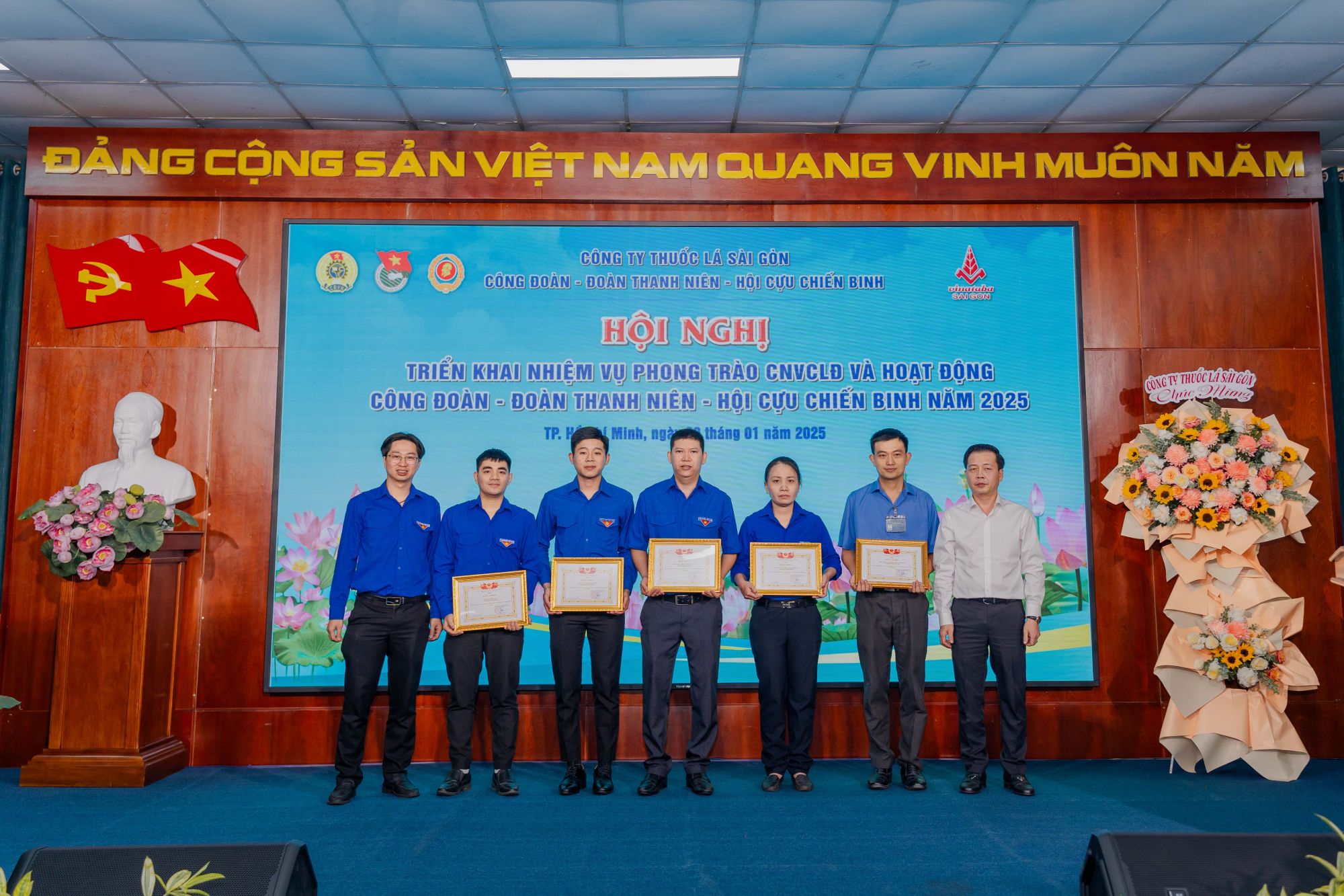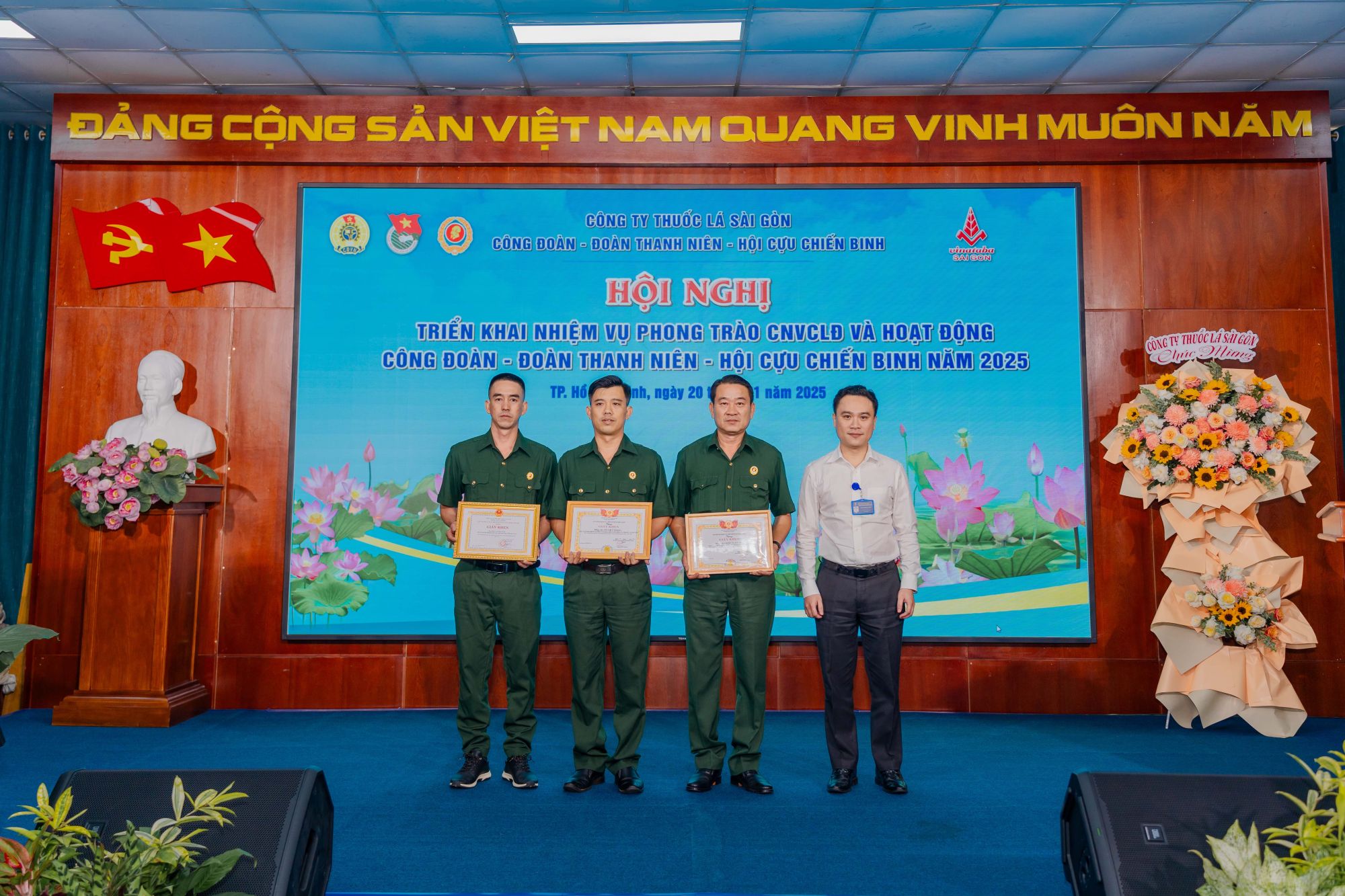 Trong không khí cả nước ra sức thi đua lao động sản xuất, quyết tâm thực hiện thắng lợi Nghị Quyết Đại hội Đảng toàn quốc lần thứ XIII, vào ngày 20/01/2025 vừa qua, Công đoàn, Đoàn Thanh niên và Hội Cựu Chiến binh Công ty Thuốc lá Sài Gòn đã phối hợp tổ chức Hội nghị triển khai nhiệm vụ công tác Công đoàn, Đoàn Thanh niên và Hội Cựu Chiến binh trong năm 2025.